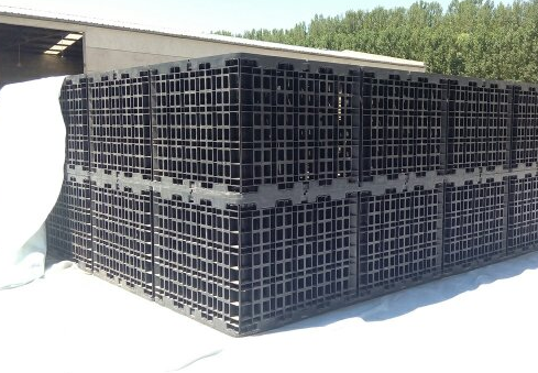 雨水收集模塊是海綿雨水收集利用系統中的一部分,若干個雨水收集模塊單元組合起來,形成一個地下貯水池。在水池周圍根據工程需要包裹防滲土工布或透水土工布,組成貯水池、滲透池、調洪池不同類型。用雨水收集模塊組裝水池,安裝方便,承載力大,不滋生蚊蠅及藻類,且在臨建地區域使用后,可以拆除遷移到其它區域繼續使用。